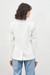 Inventively tailored, front-open blazer in pearl white with a lined finish