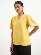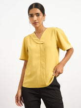 Asymmetric collar detail top with a modern twist on classic styling