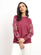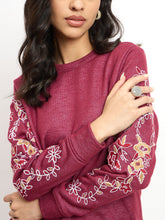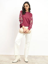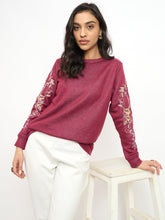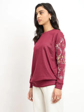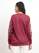 Vinia Embroidered Sleeve Sweatshirt - Wine