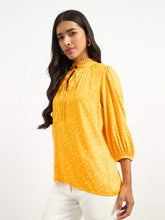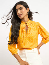 Zebi Tie-up Ruffled Neck Top - Yellow
